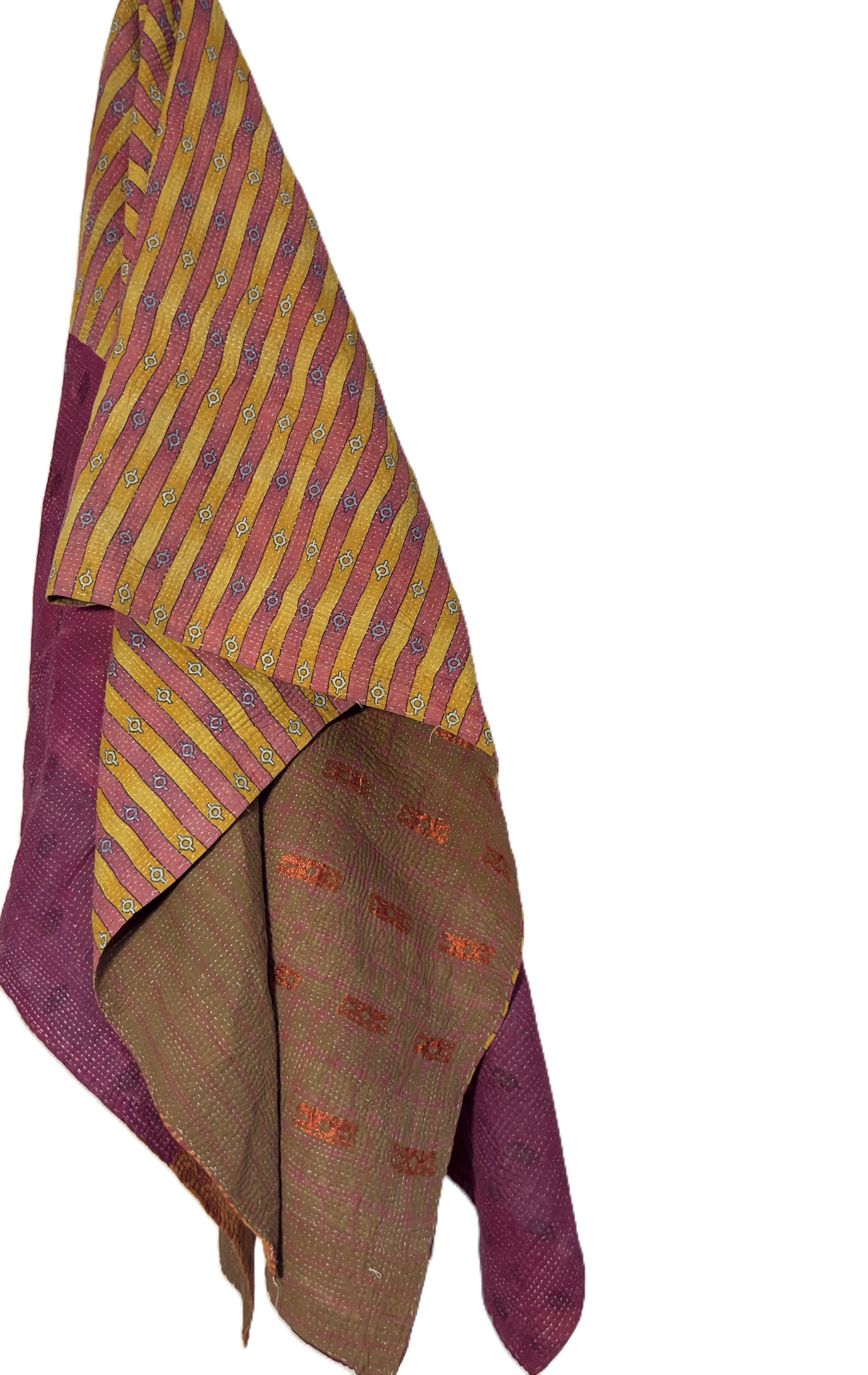 This is a special hand crafted Kantha Quilt. The entire quilt is made with thousands of small and delicate kantha stitches to create a one of a kind masterpiece!